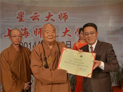 The Xingyun Master received the certificate of SHNU Honorary Professor after he probed the significance of Void and Existence. Later, he explained the relationship between individual mind, family harmony, interpersonal relation, social harmony and world peace.