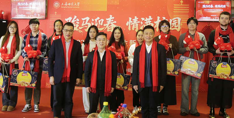 Lin Zaiyong, the Secretary of theSHNU Party Committee, extended festive greetings and best wishes to the students who stayed on campus during the holiday and the faculty and staff who remained at their posts. In his message, Chen Heng, SHNU President, reviewed the impressive achievements made in the universitydevelopment over the past year and expressed heartfelt gratitude to all teachers and students for their concerted efforts and hard work.