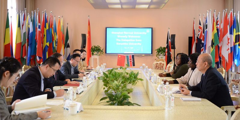 On the morning of November 3rd, Professor Caroline Lang'at Thoruwa, Vice Chancellor of Kenyatta University (KU), led a delegation to visit SHNU. The delegation included Professor Mildred P. Nawiri, the university's Academic Registrar, and Professor Zhou Xiaodong, the Chinese Director of the Confucius Institute. Vice President of SHNU Jiang Mingjun extended a warm welcome to the delegation on behalf of SHNU. Representatives from the International Exchange Office, the School of Education, and the UNESCO International Centre for Teacher Education participated in the discussions. The two parties held in-depth talks on deepening cooperation between the universities and expanding educational exchange initiatives. Jiang Mingjun expressed that SHNU has consistently and actively engaged in the global higher education network, cultivating a large number of educational talents for primary and secondary schools in Shanghai. The university has established the International Centre for Teacher Education and hosted multiple international teacher training programs.